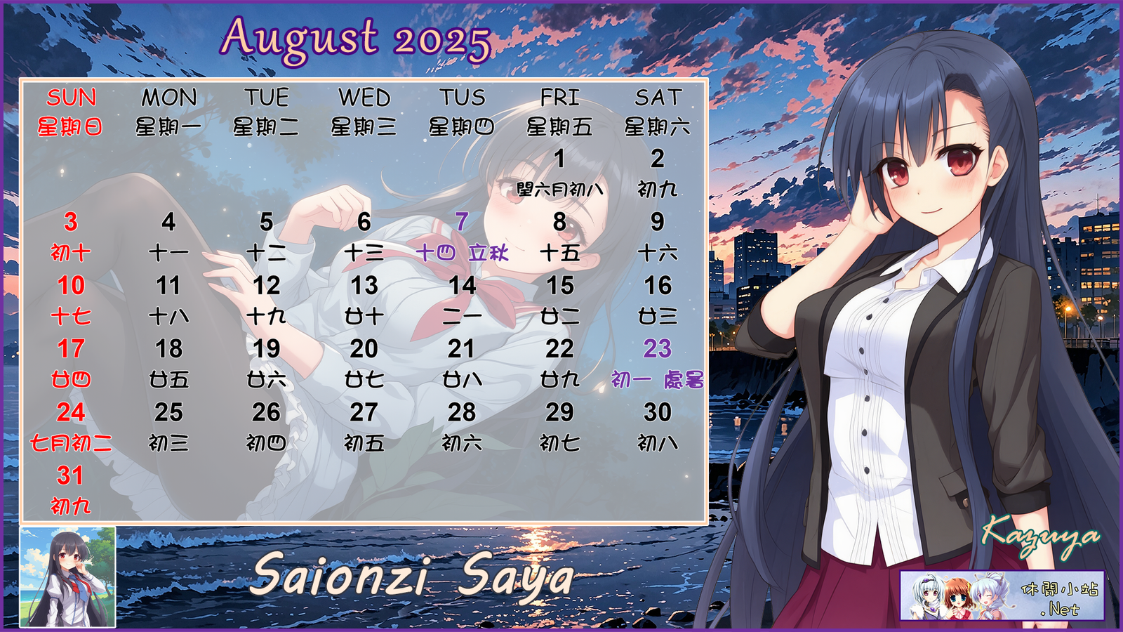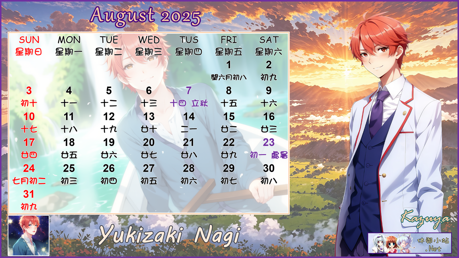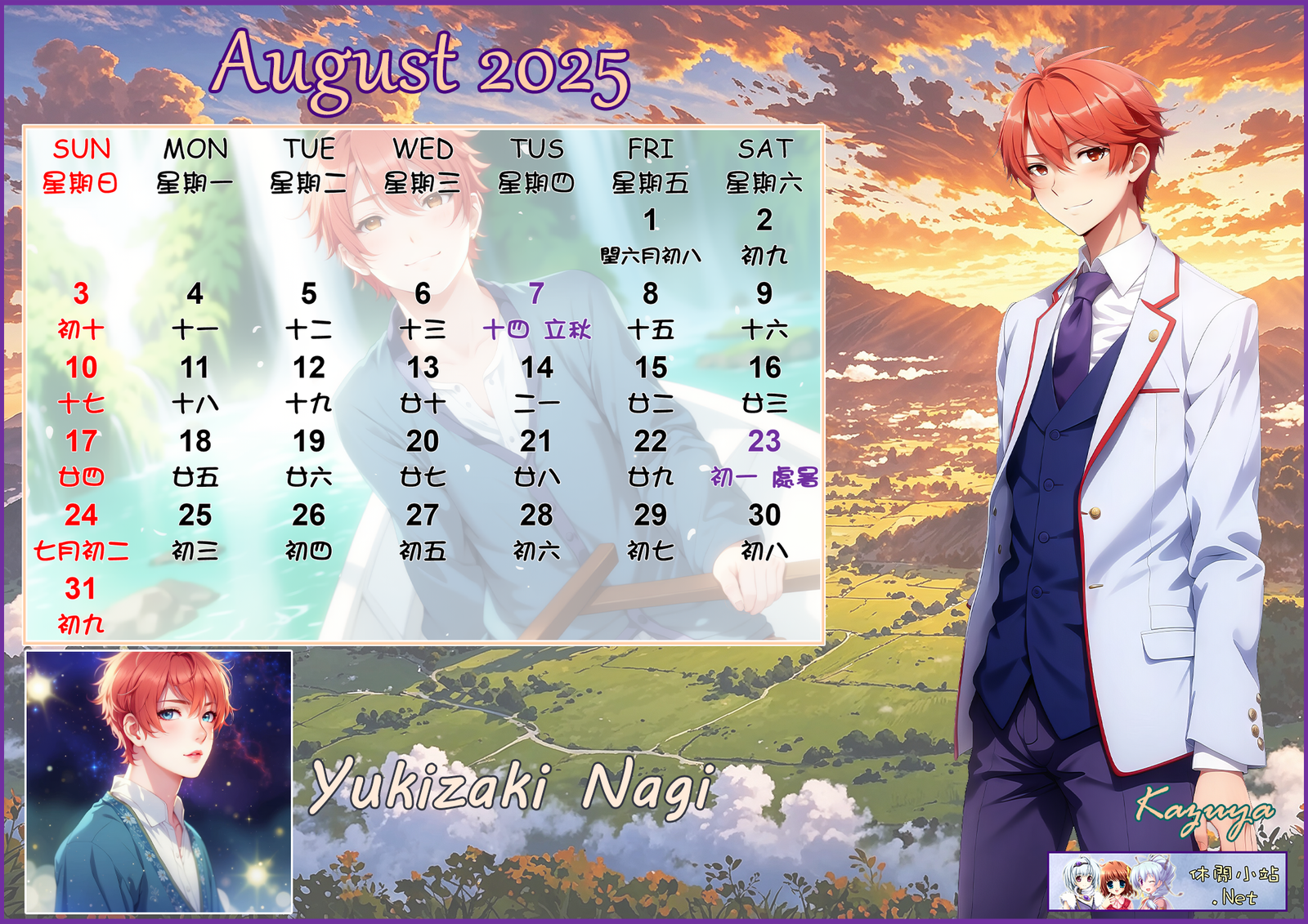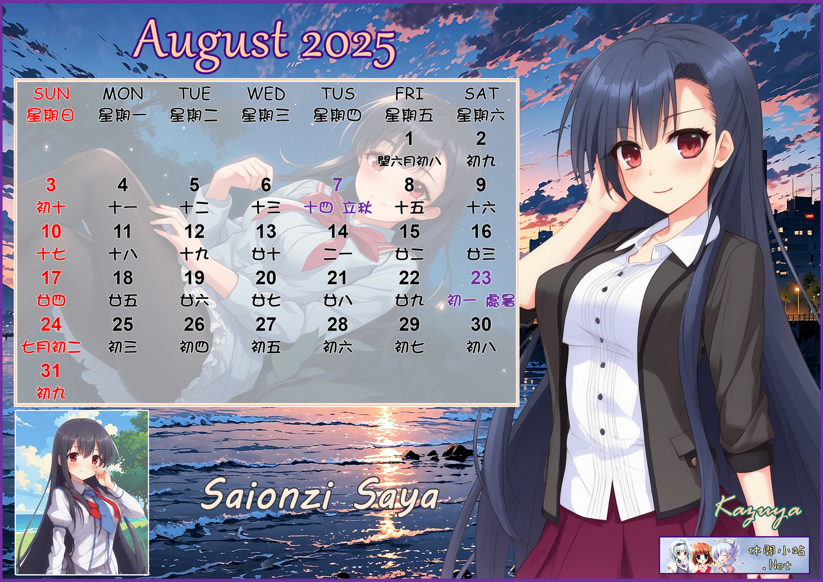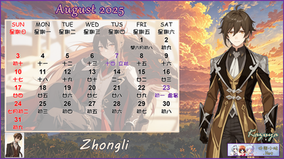 2025年8月月曆圖已公佈,中文,英文及各A4版都在下面,按下圖片可下載。
