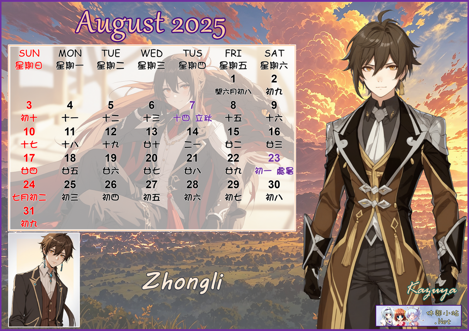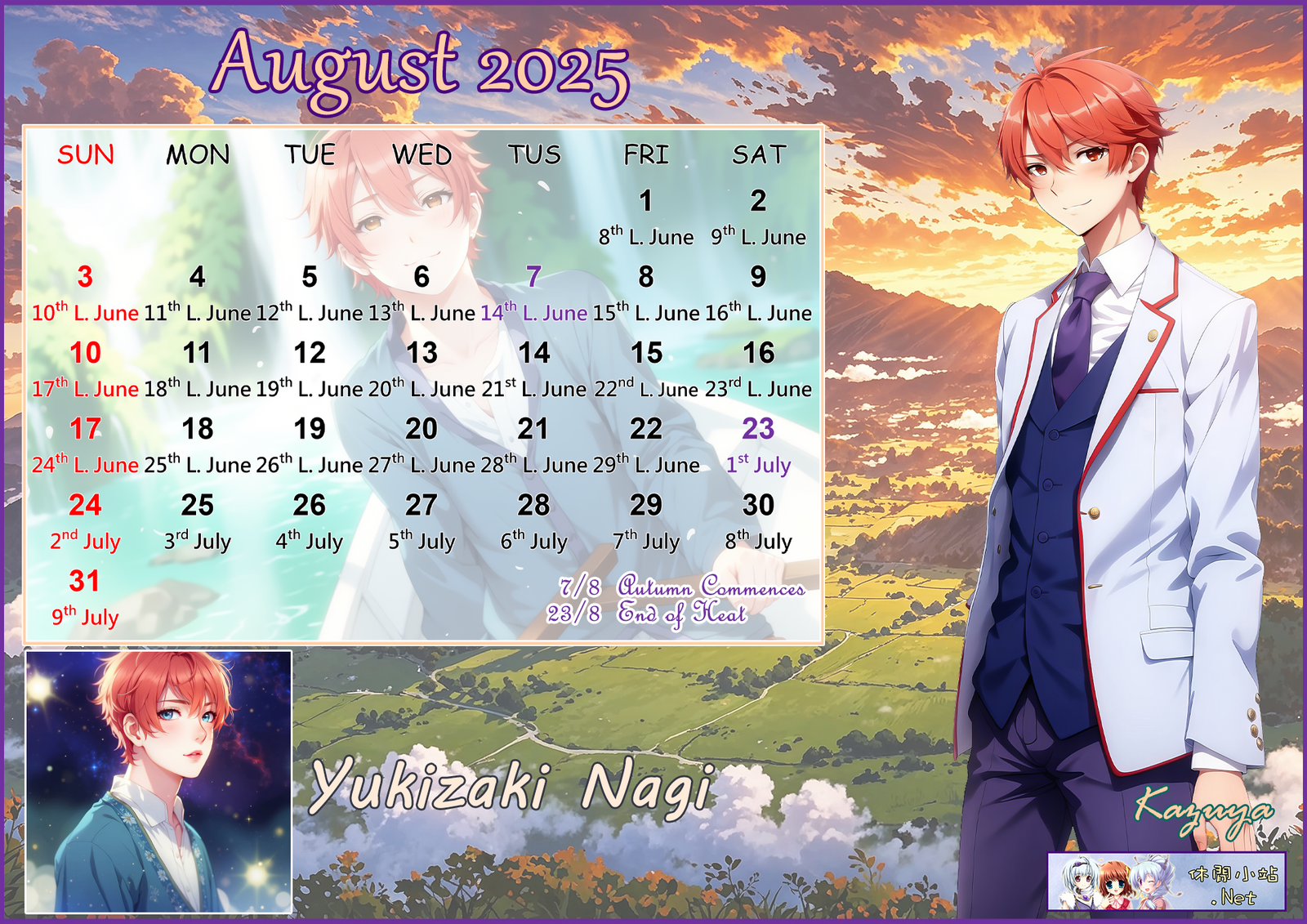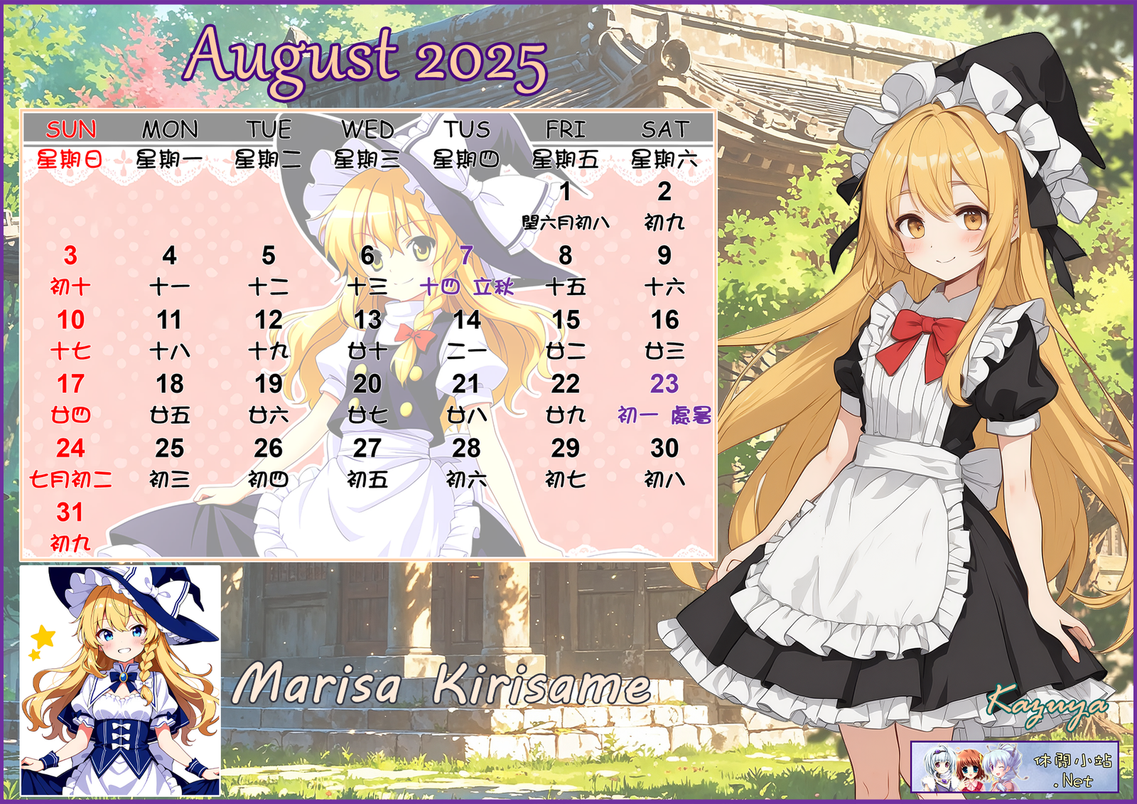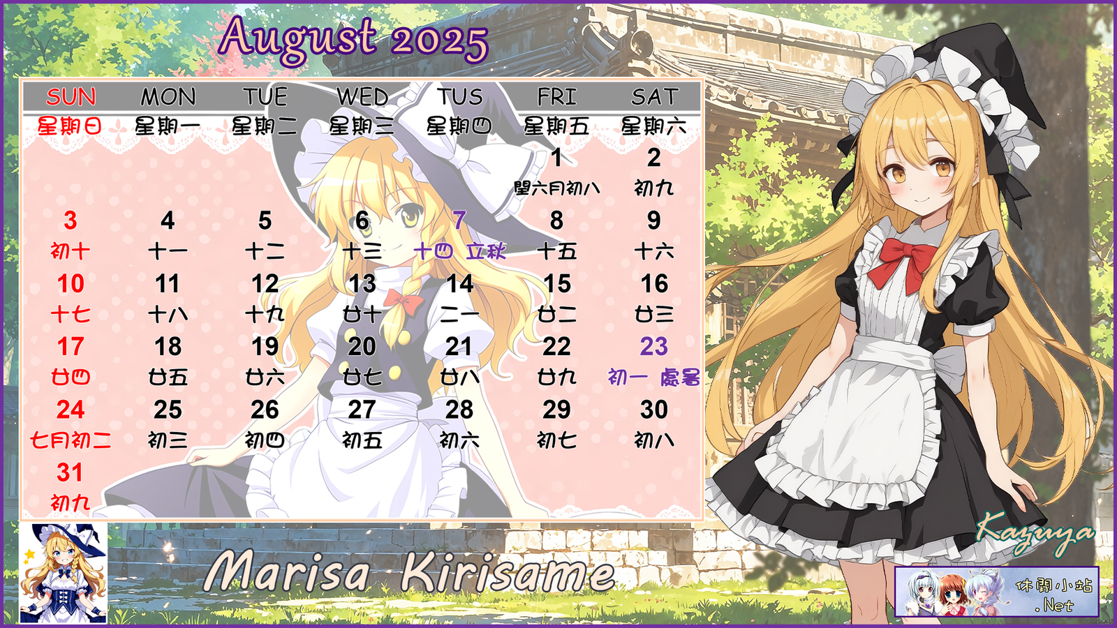 2025年8月月曆圖已公佈,中文,英文及各A4版都在下面,按下圖片可下載。