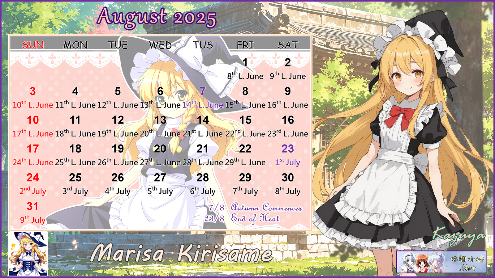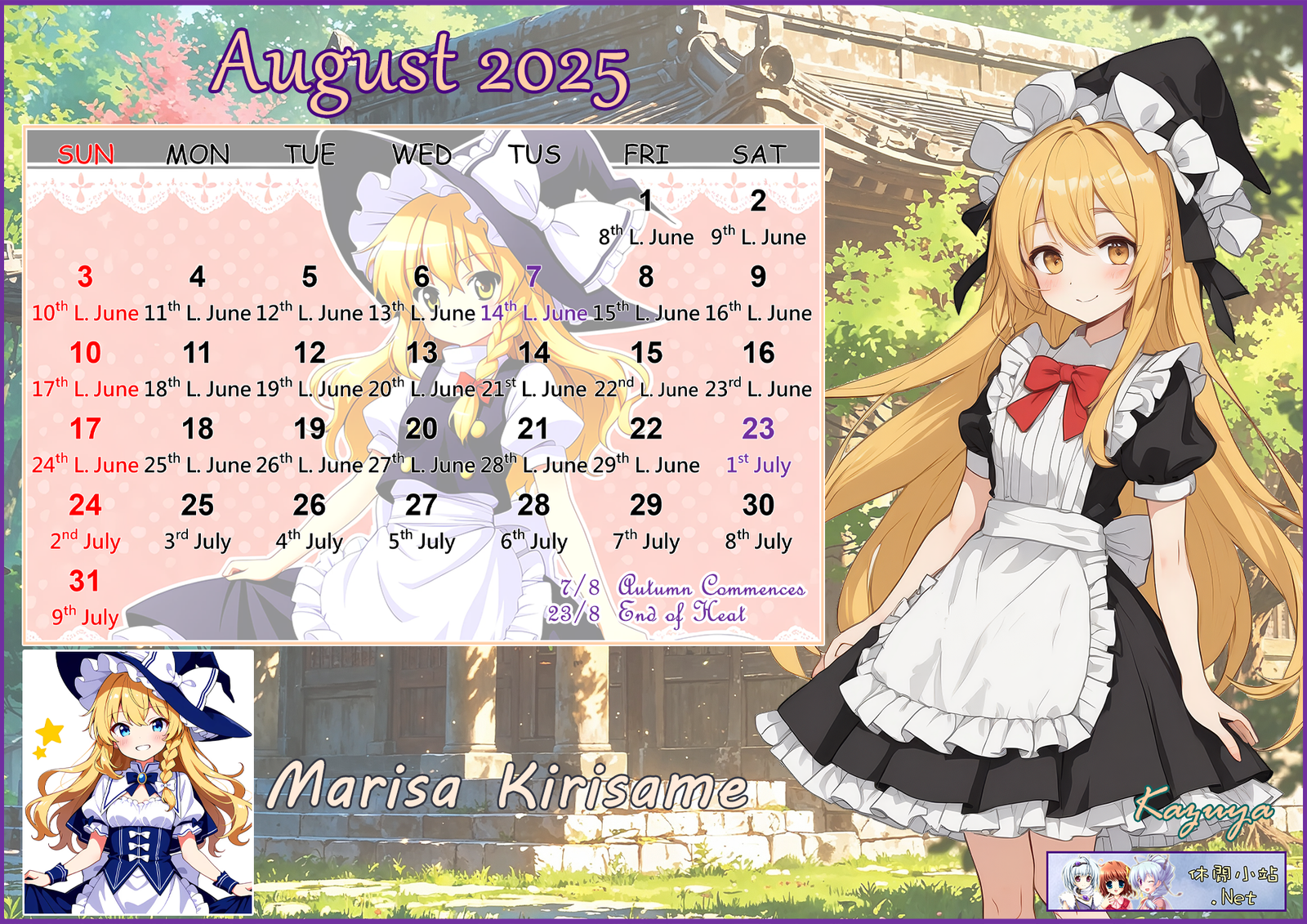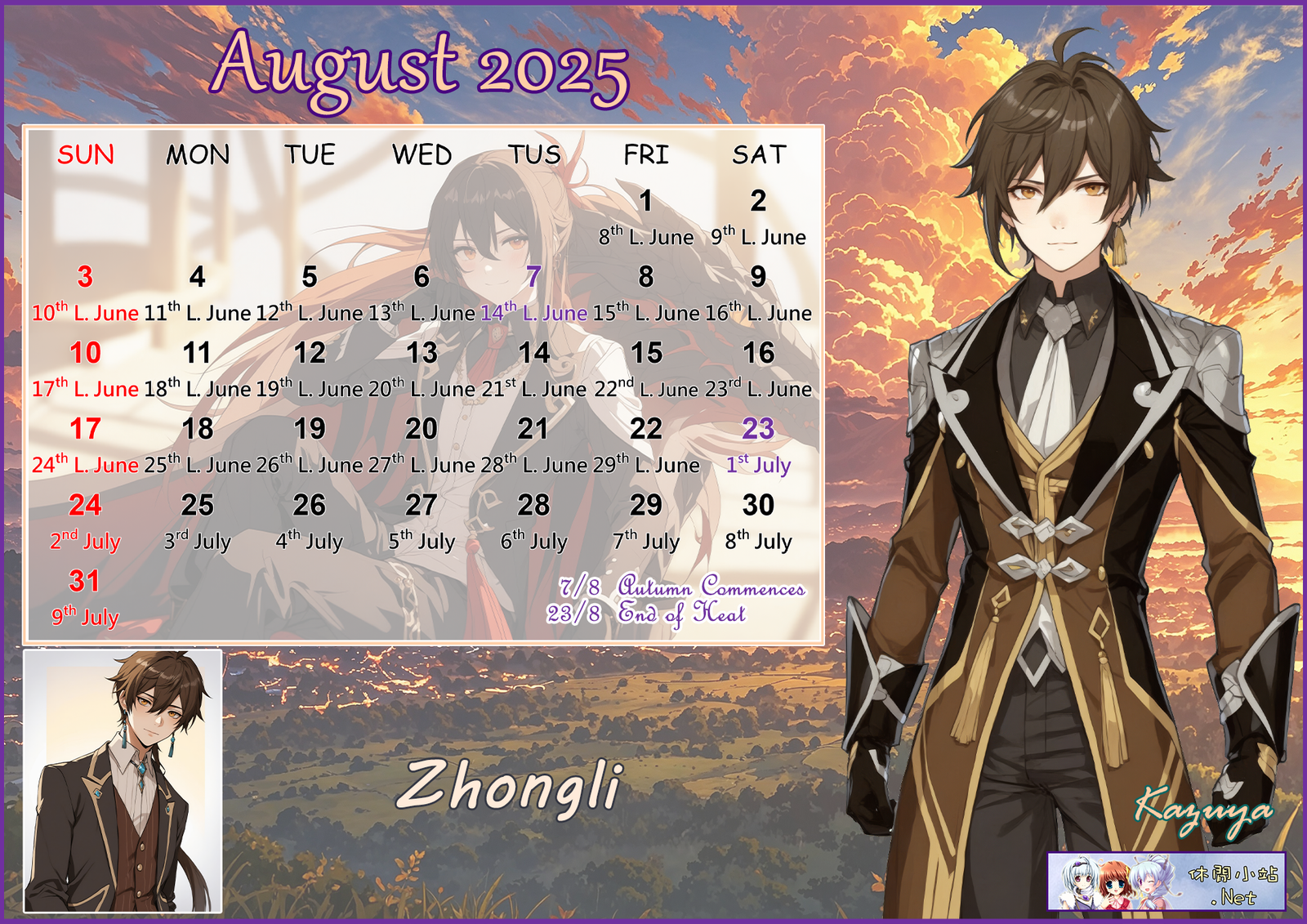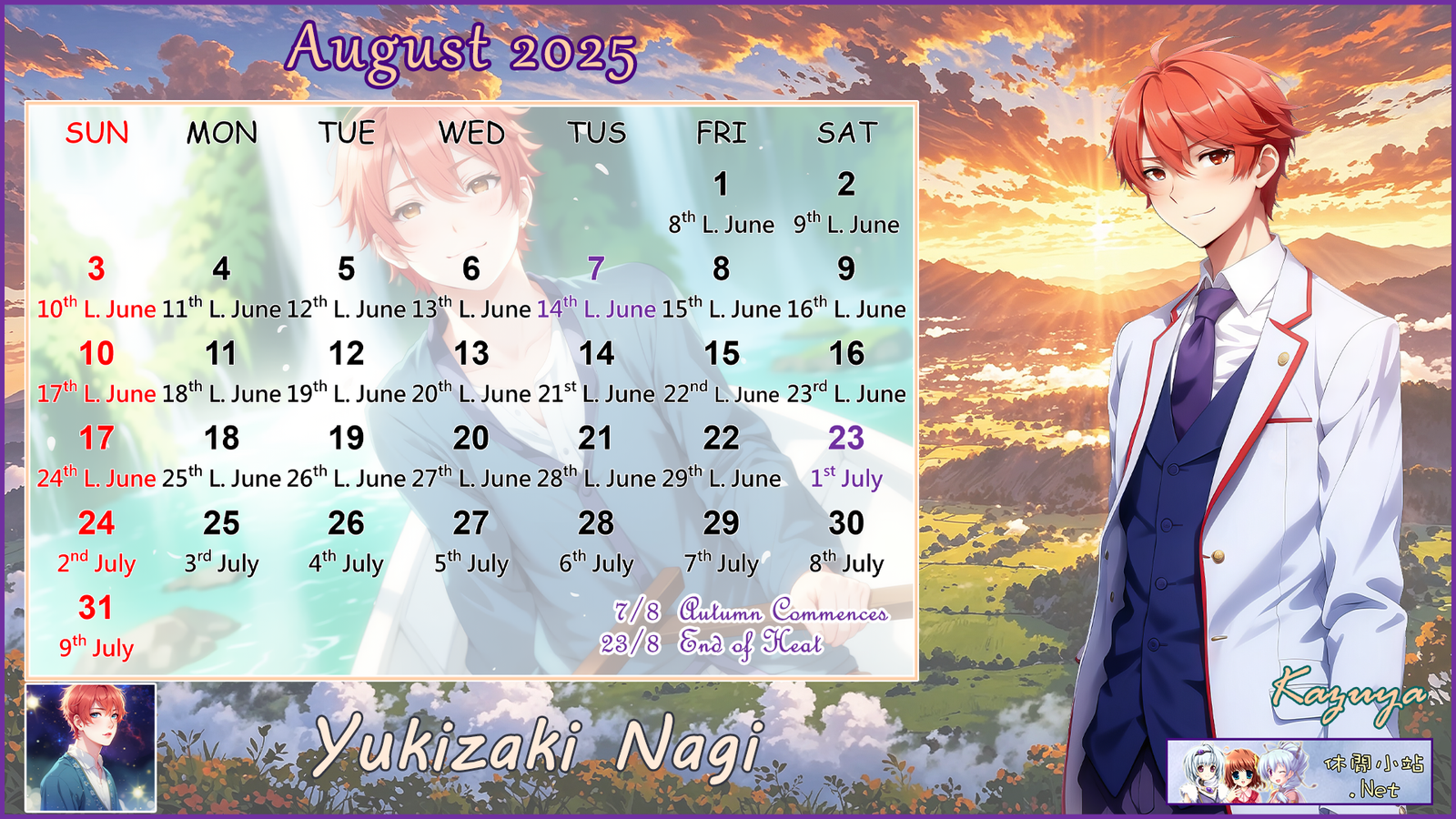 2025年8月月曆圖已公佈,中文,英文及各A4版都在下面,按下圖片可下載。