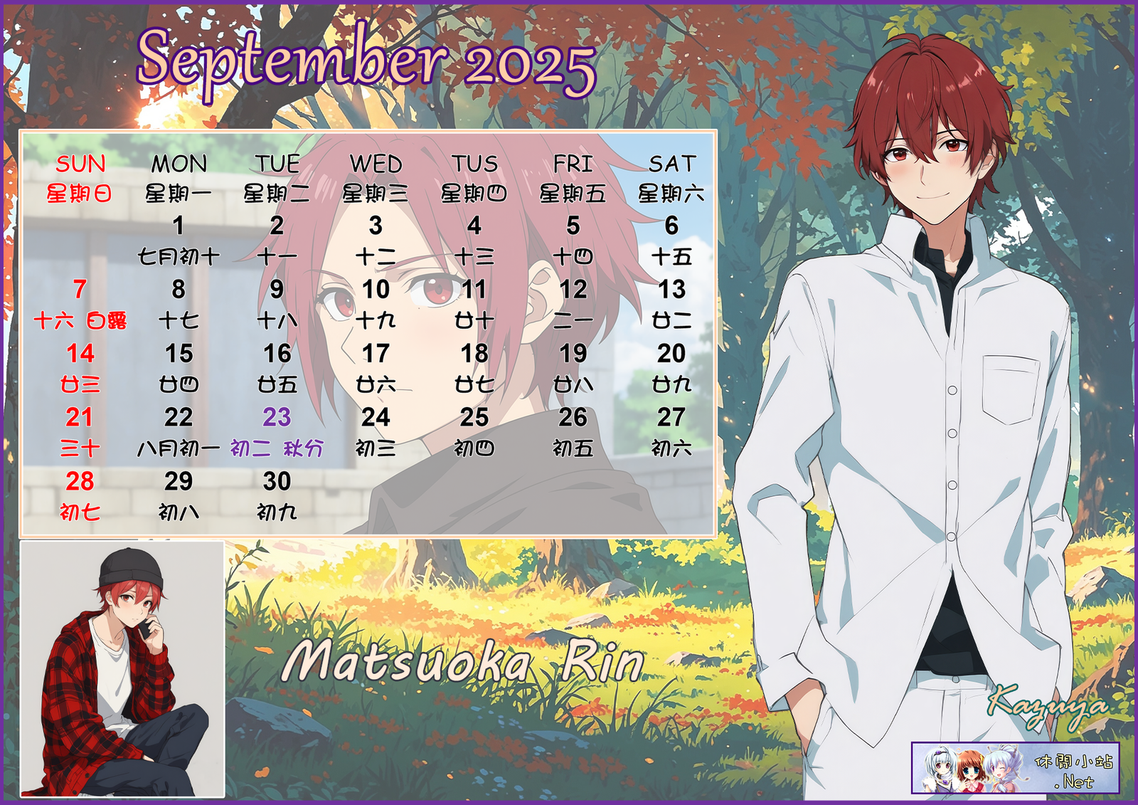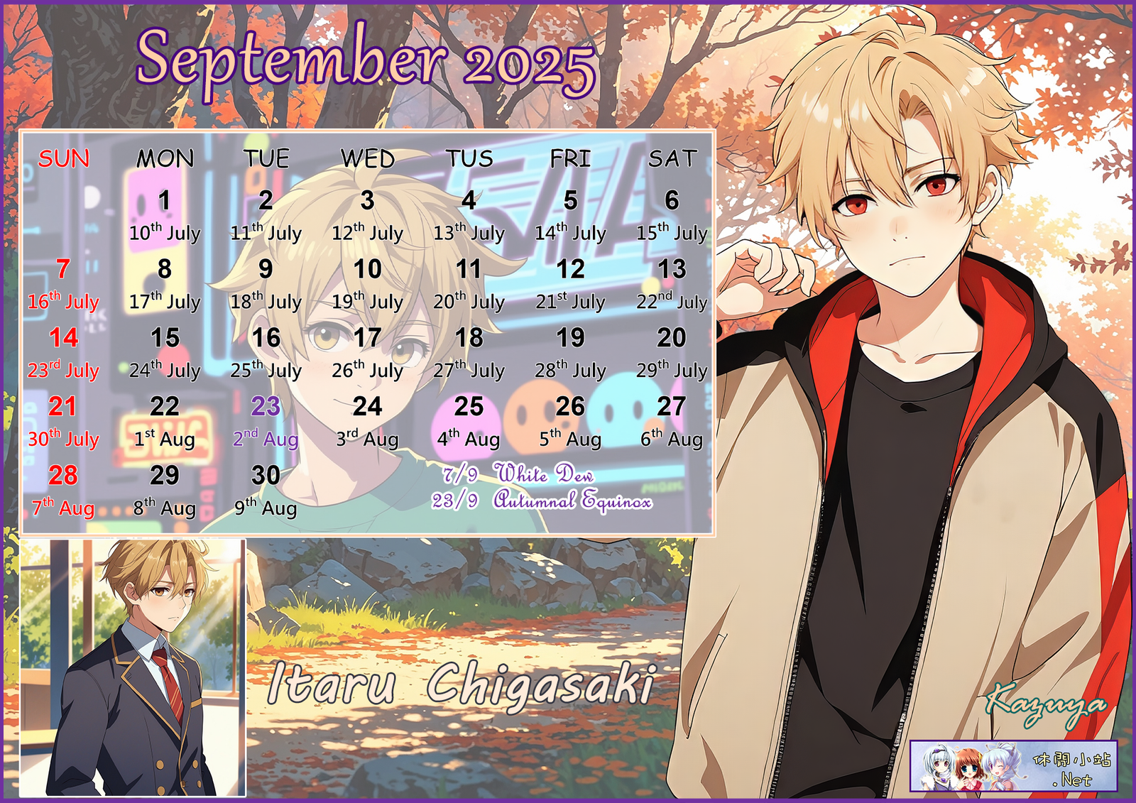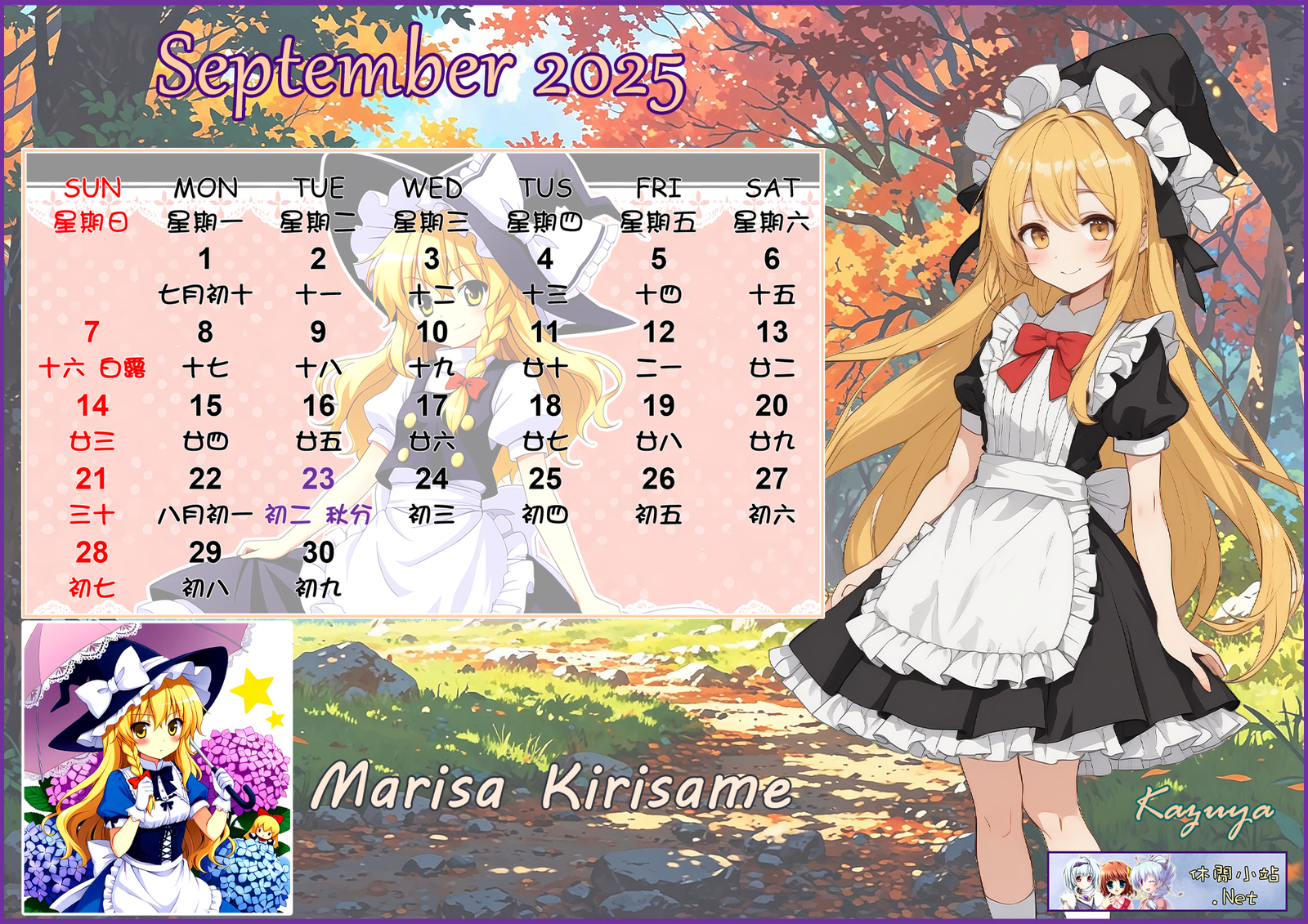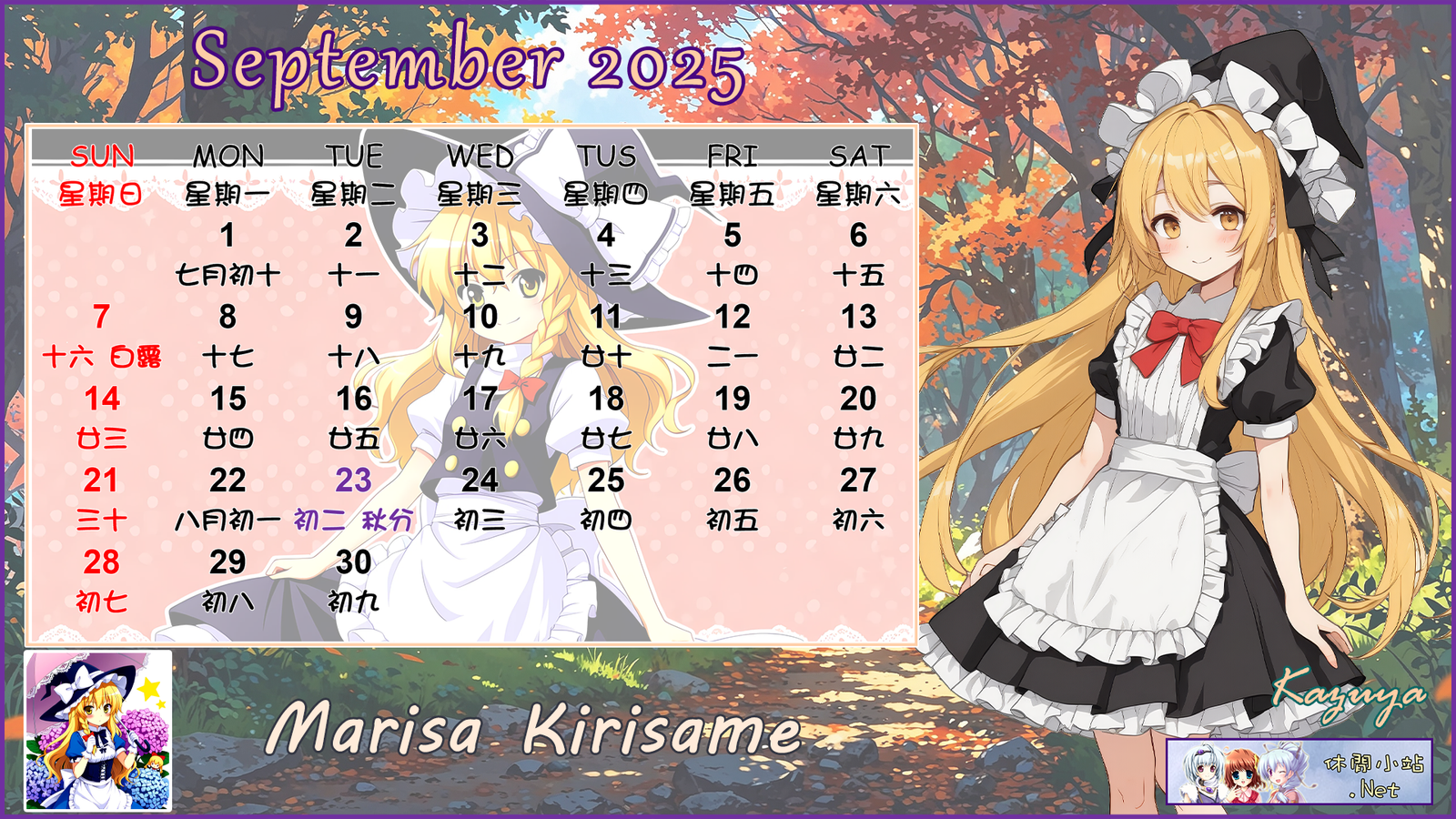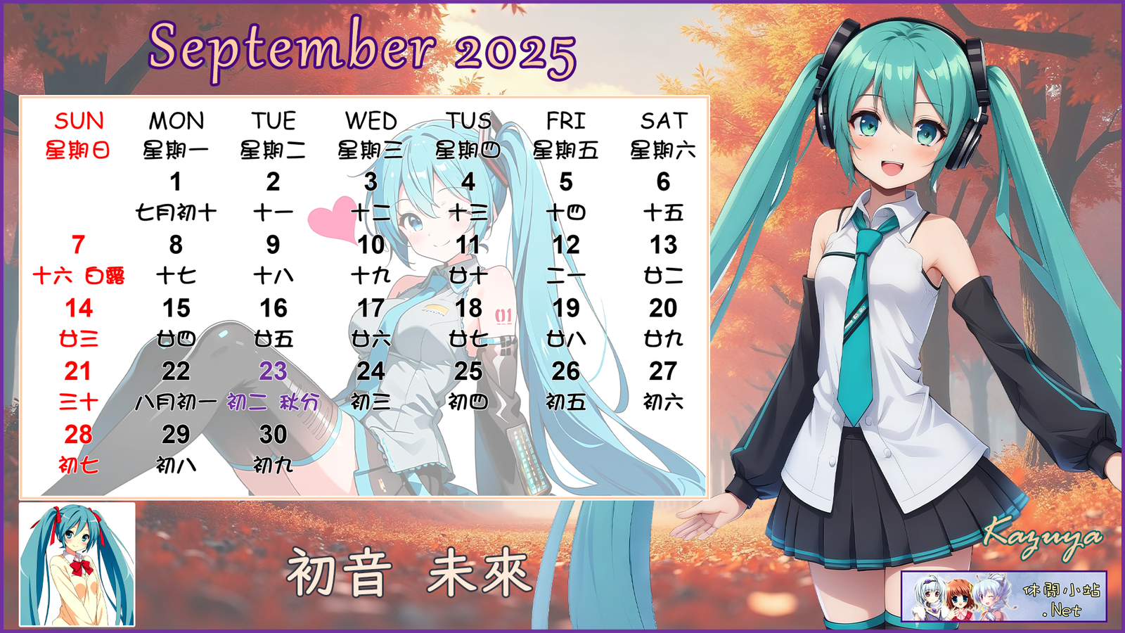 2025年9月月曆圖已公佈,中文,英文及各A4版都在下面,按下圖片可下載。