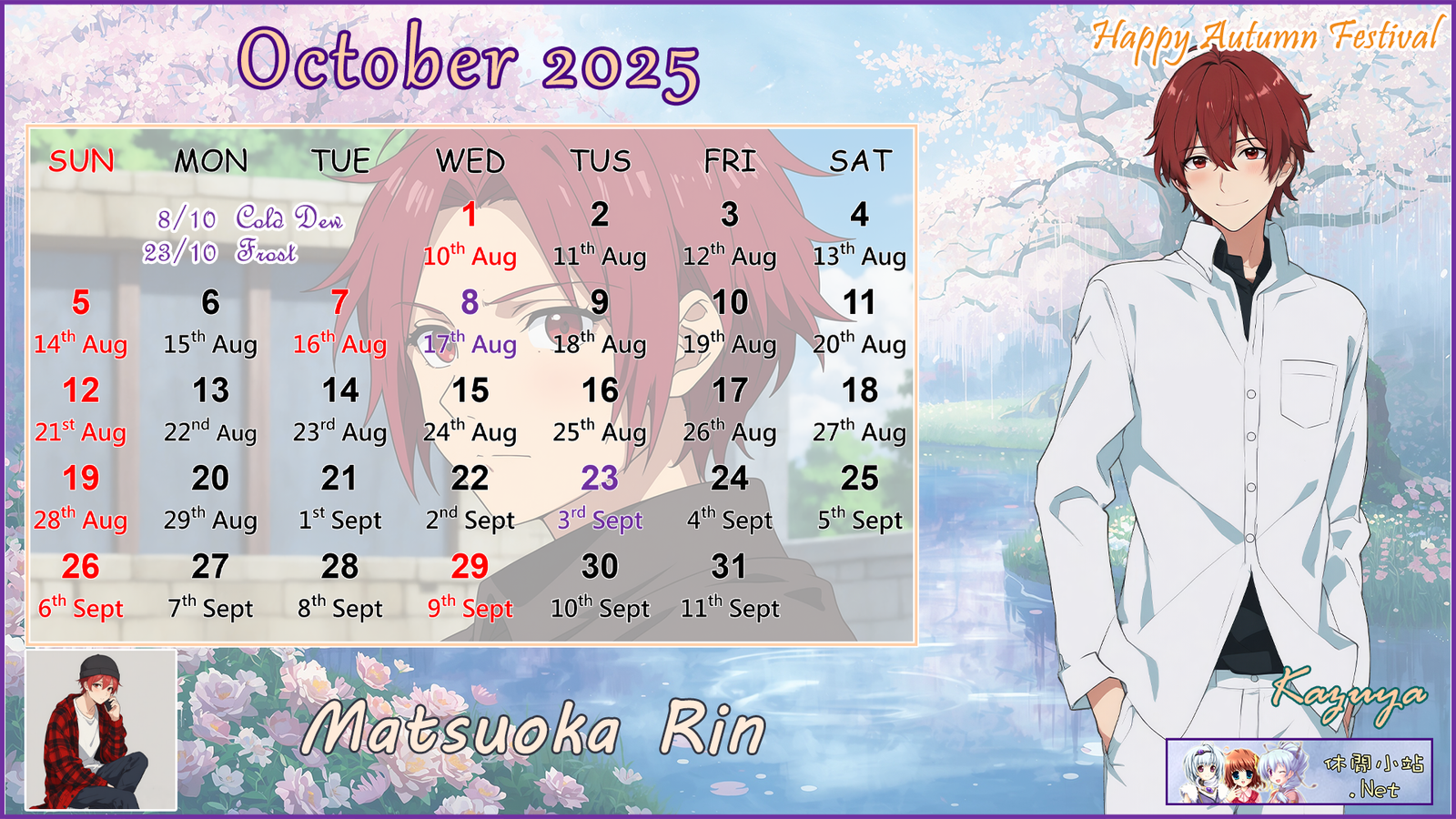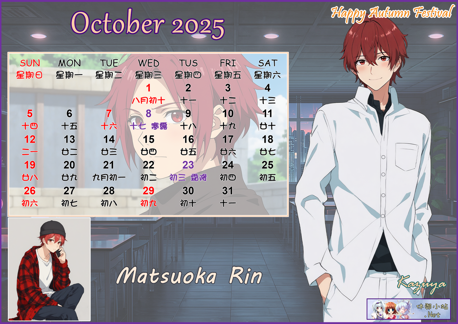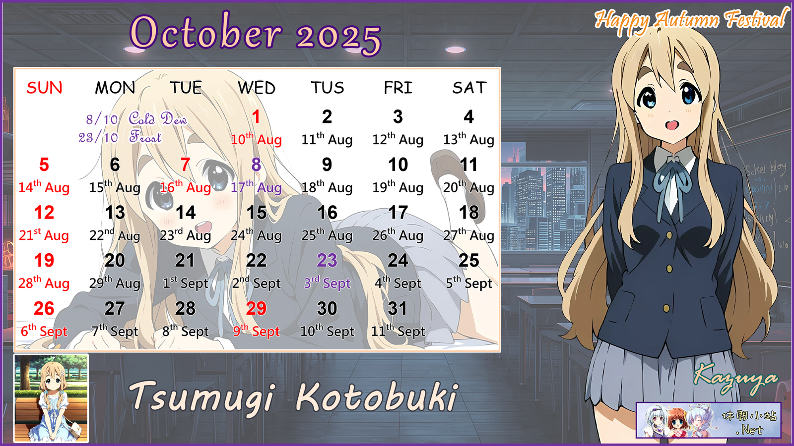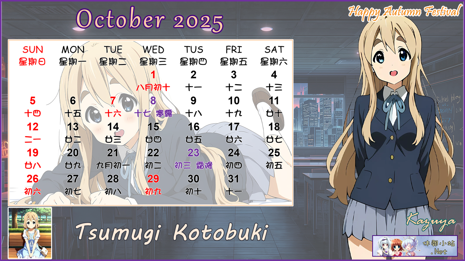The October 2025 calendar wallpapers in Chinese, English, and A4 versions are available for download by clicking on the pictures below.