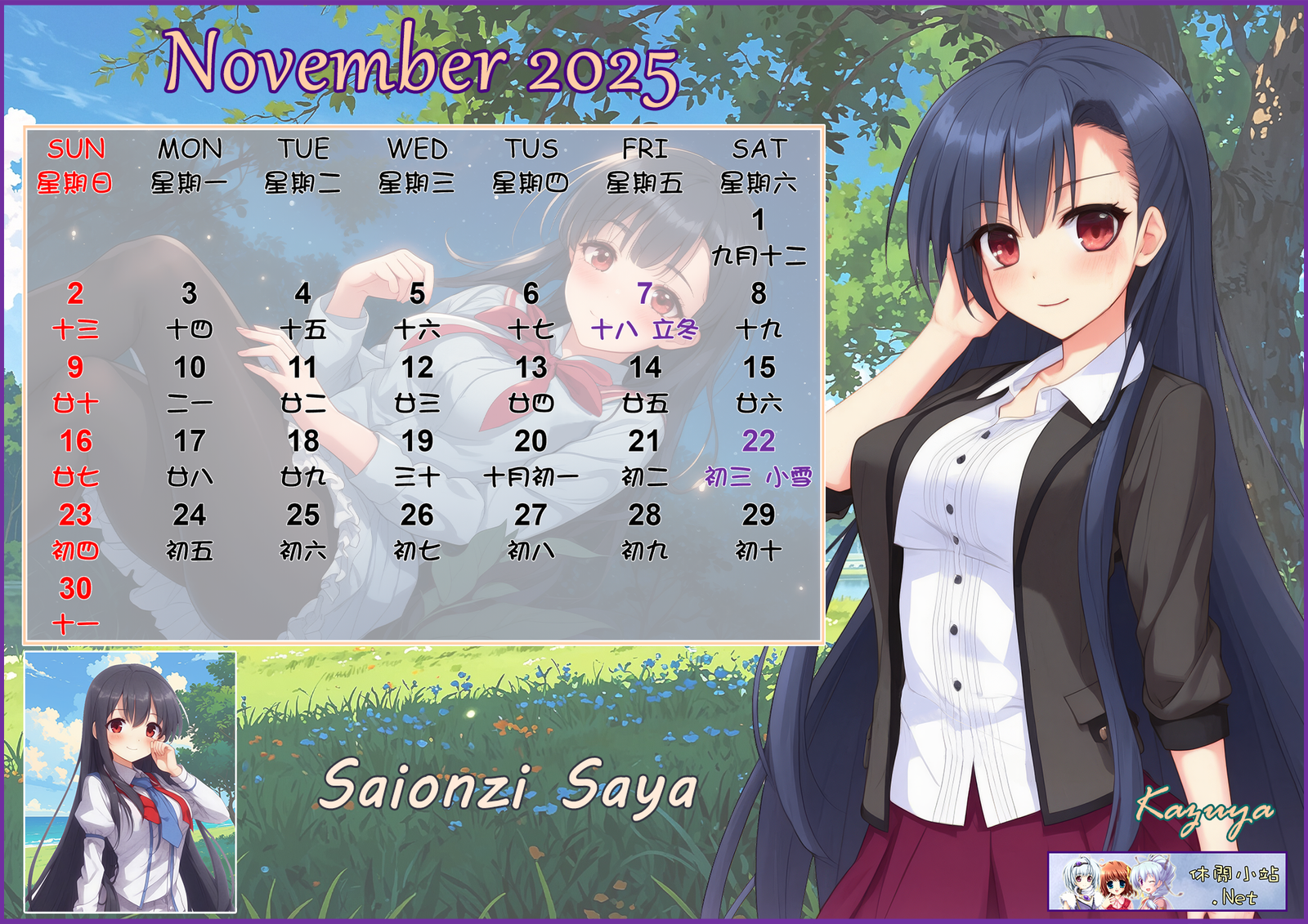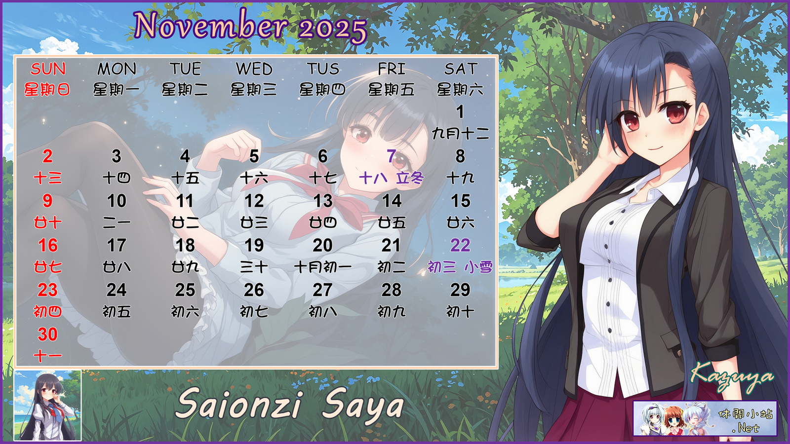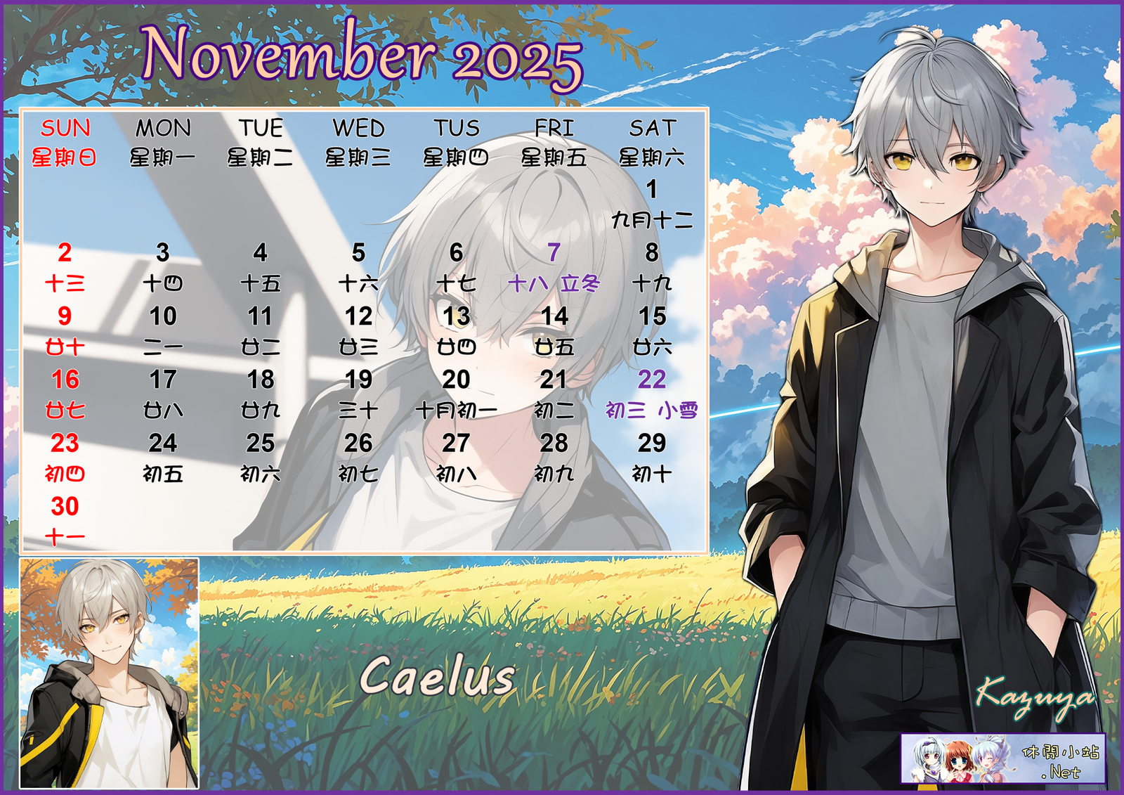 2025年11月月曆圖已公佈,中文,英文及各A4版都在下面,按下圖片可下載。