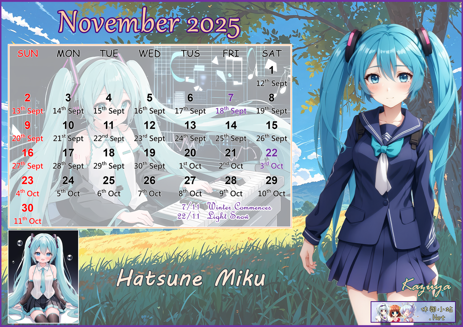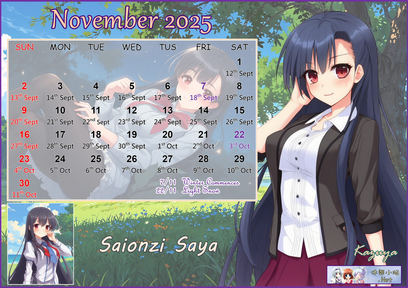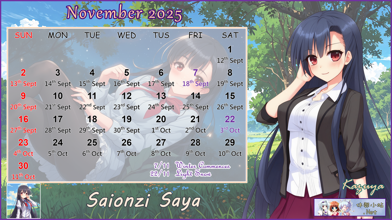 2025年11月月曆圖已公佈,中文,英文及各A4版都在下面,按下圖片可下載。