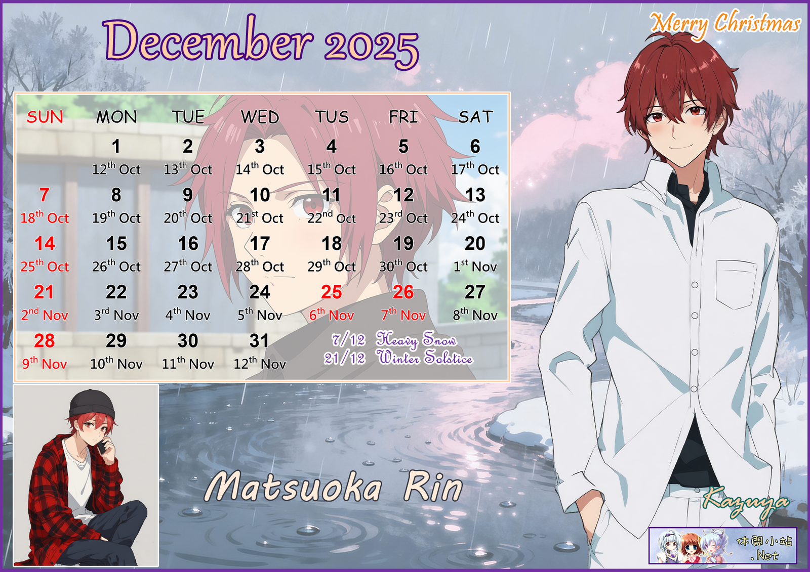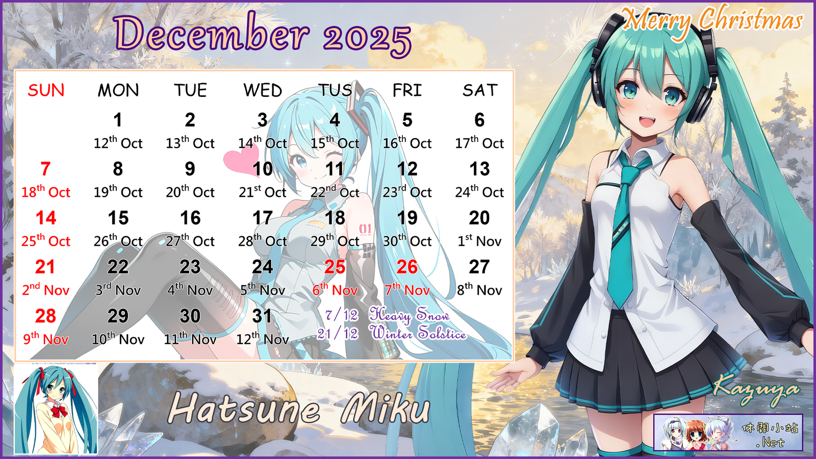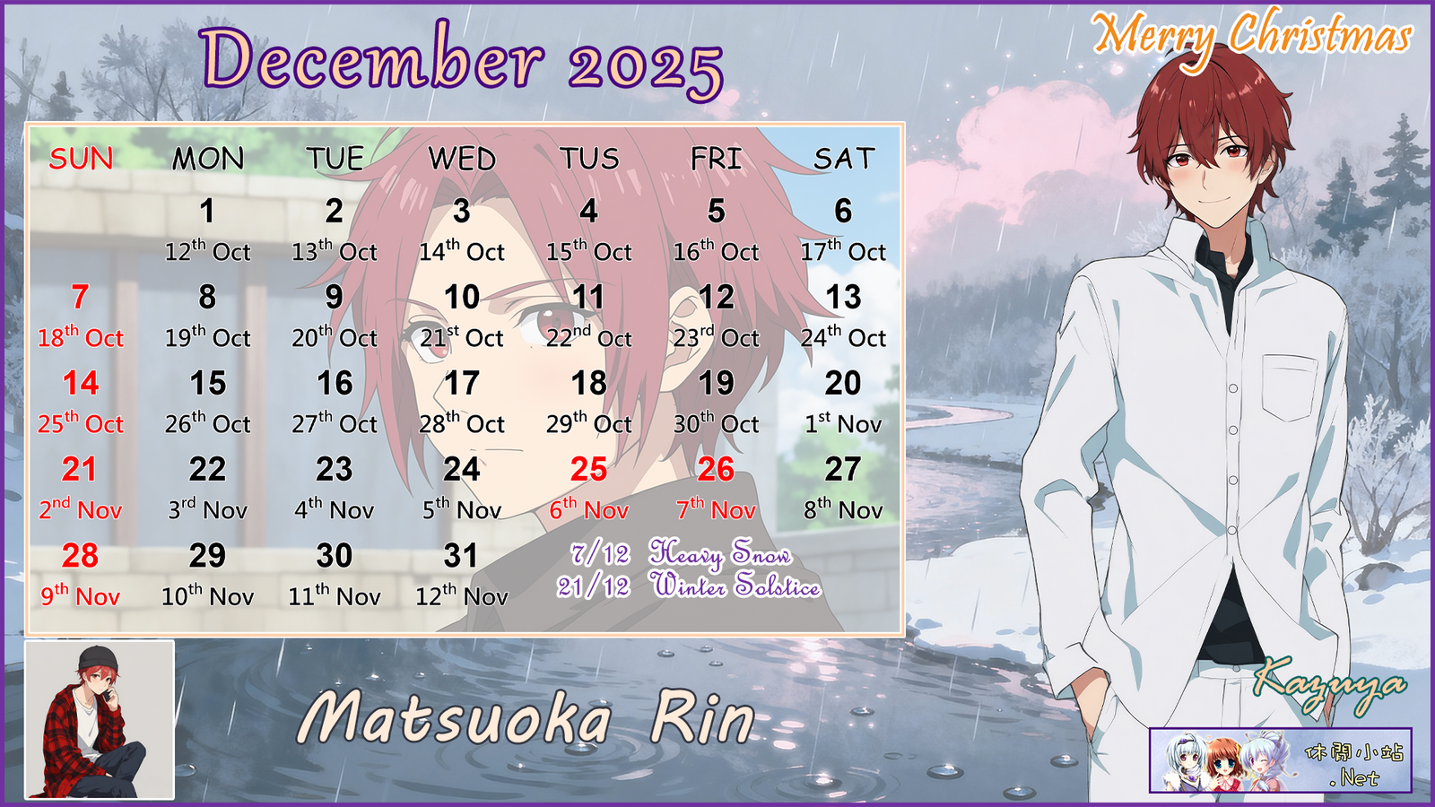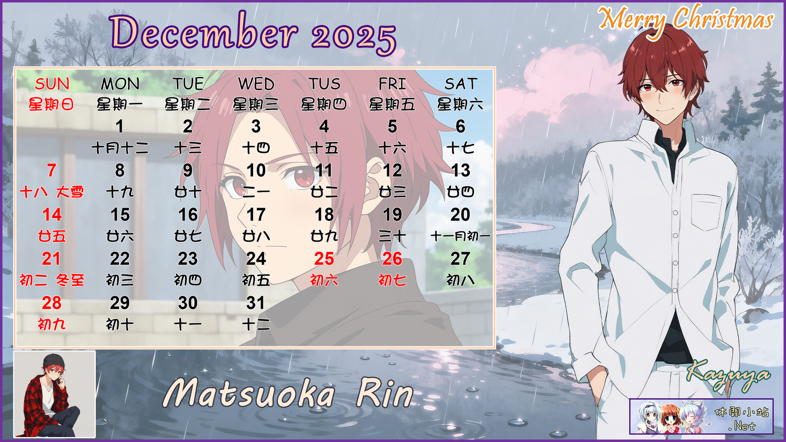 The December 2025 calendar wallpapers in Chinese, English, and A4 versions are available for download by clicking on the pictures below.