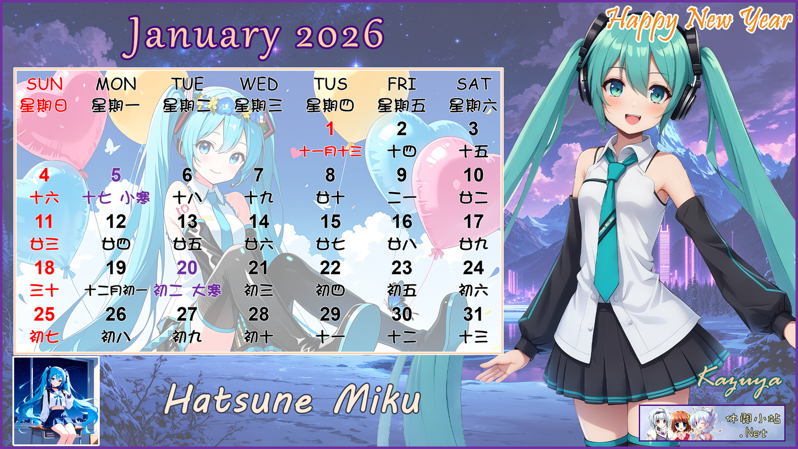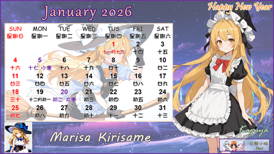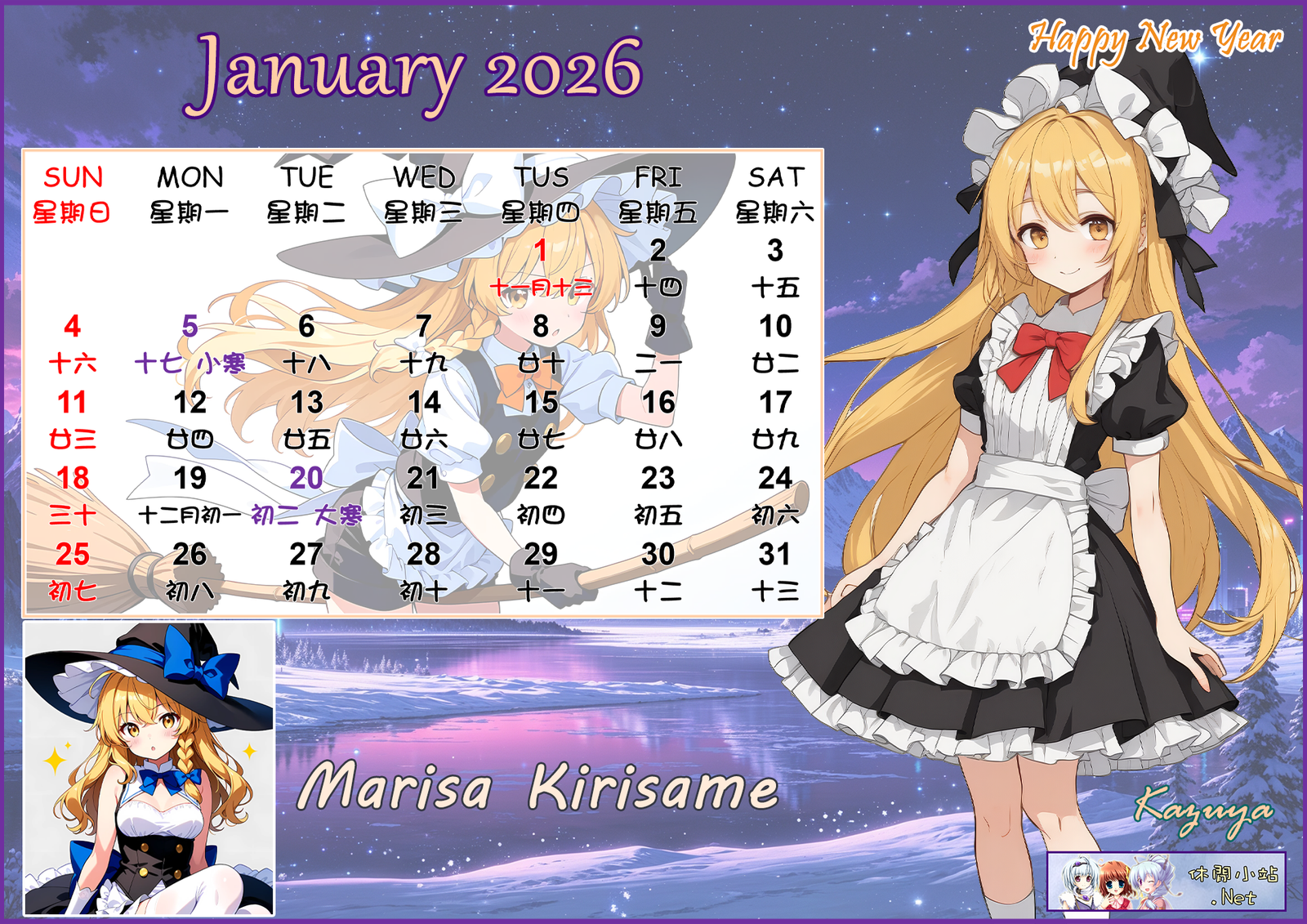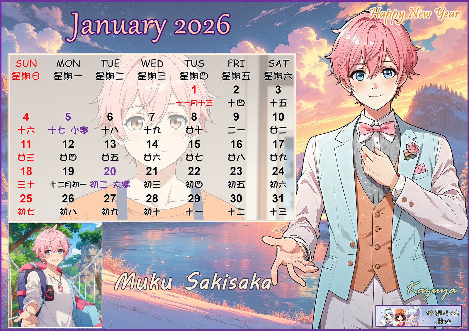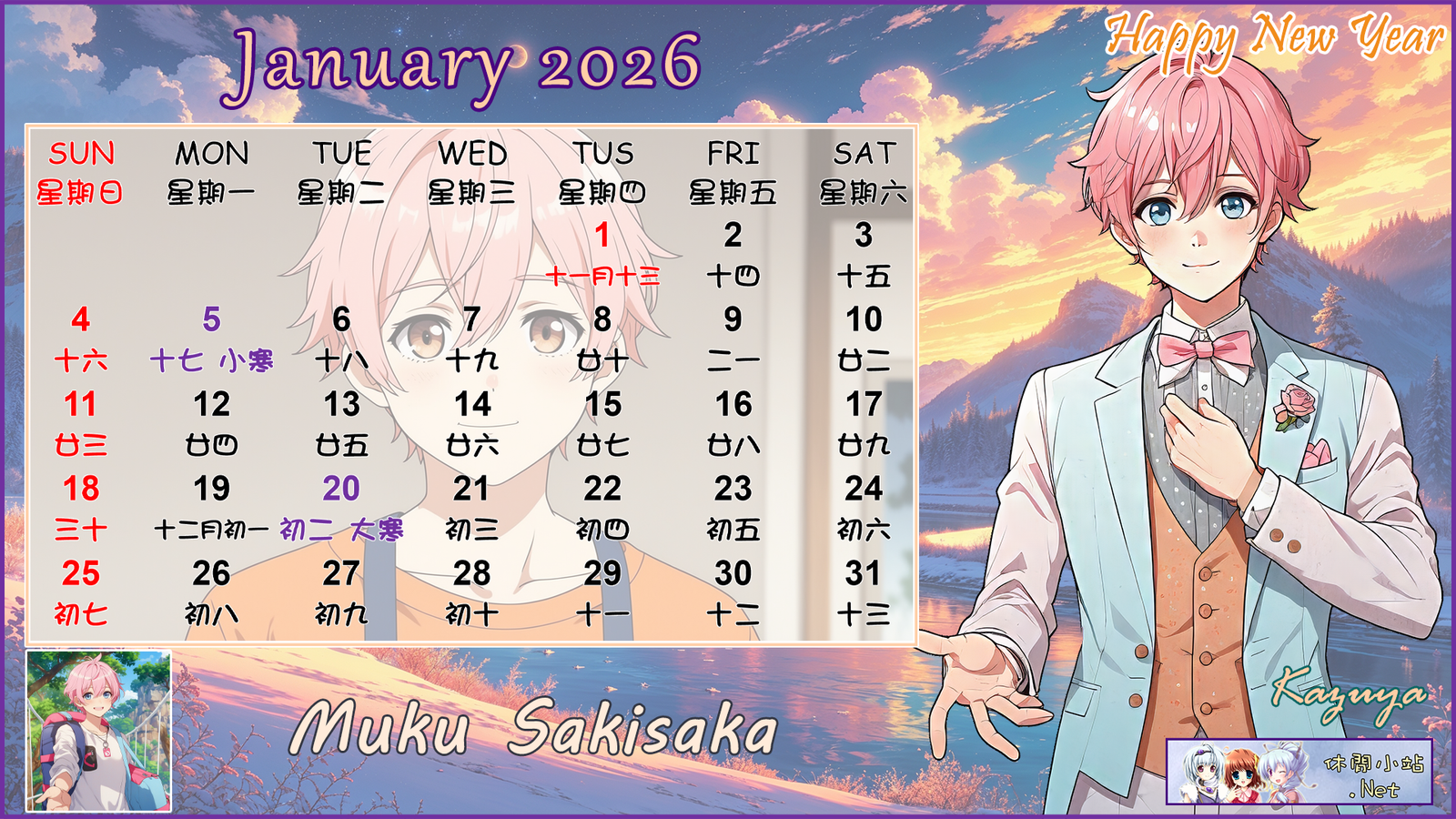 2026年1月月曆圖已公佈,中文,英文及各A4版都在下面,按下圖片可下載。