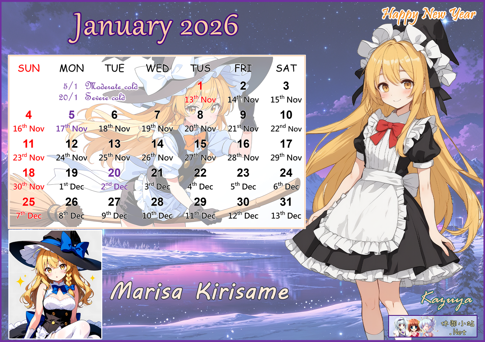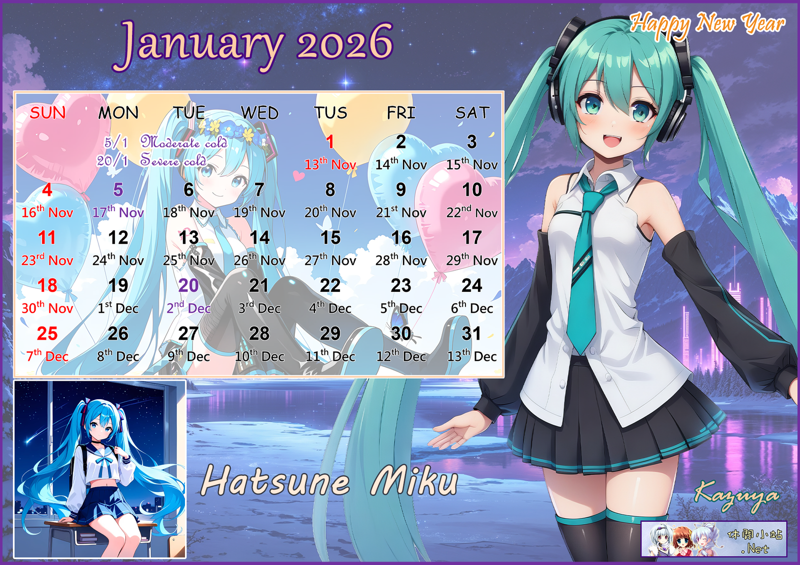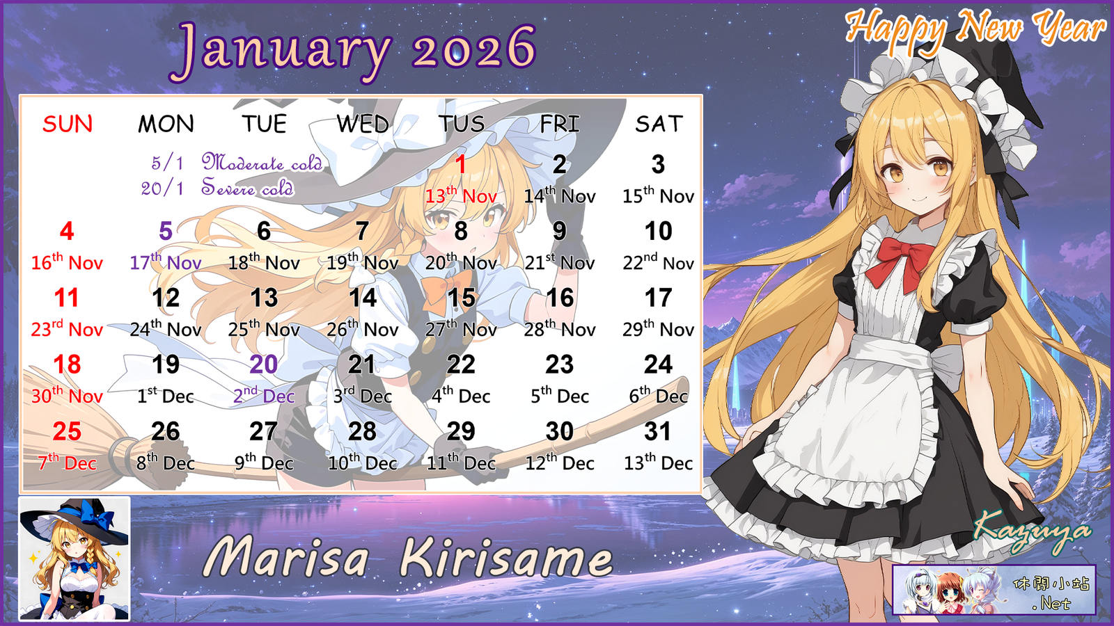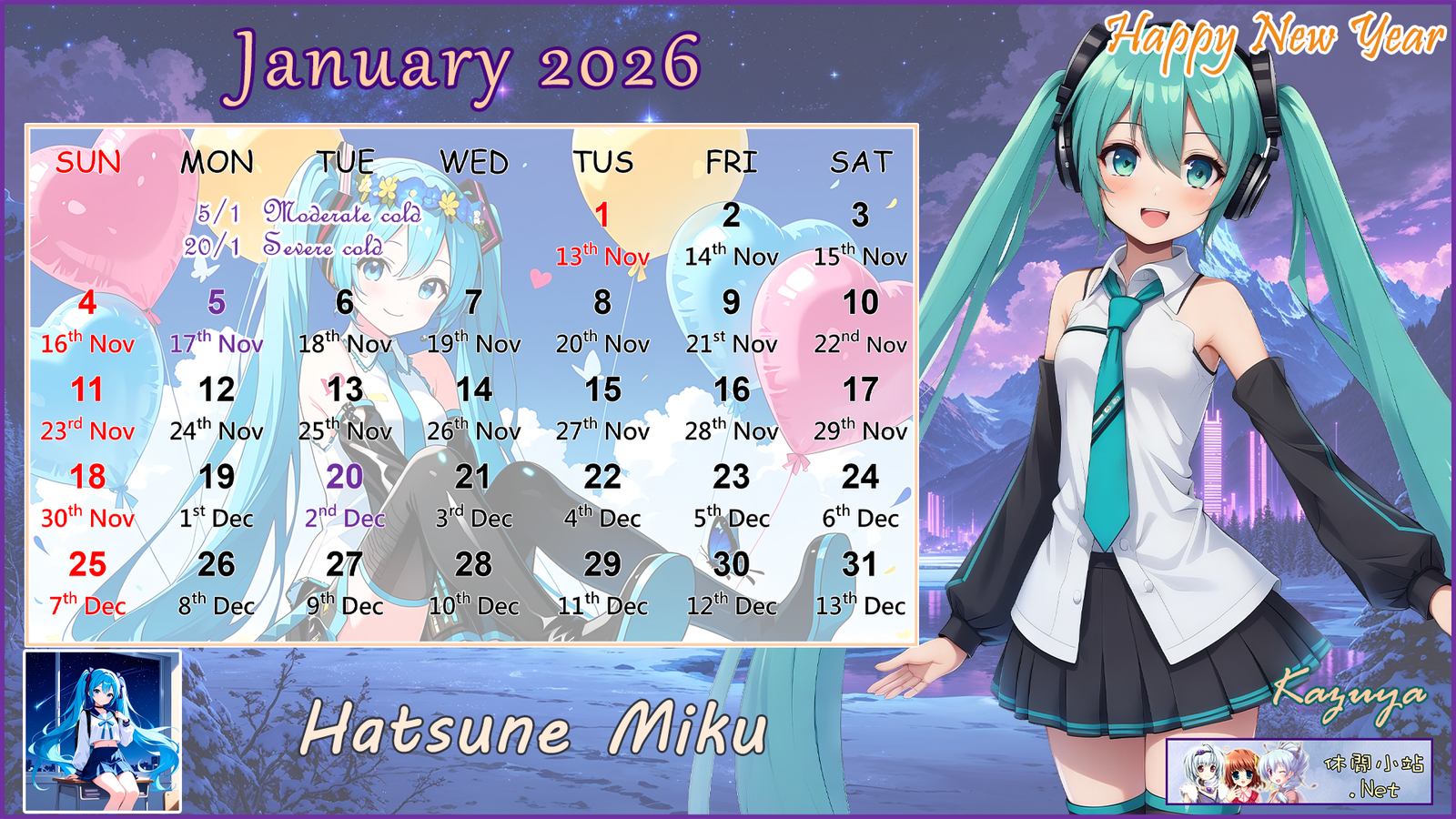 2026年1月月曆圖已公佈,中文,英文及各A4版都在下面,按下圖片可下載。