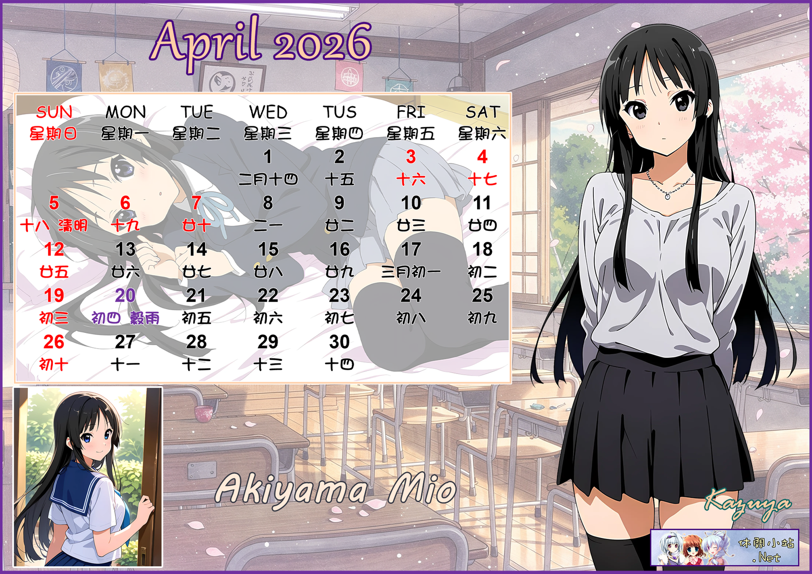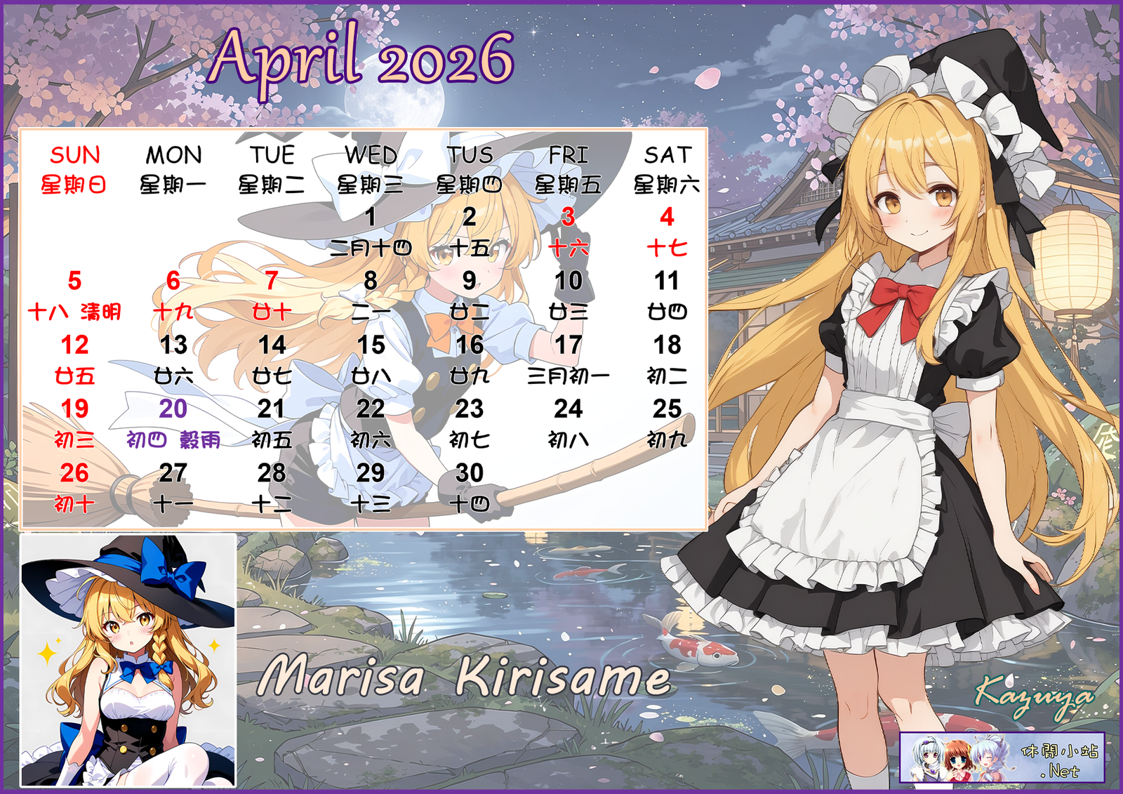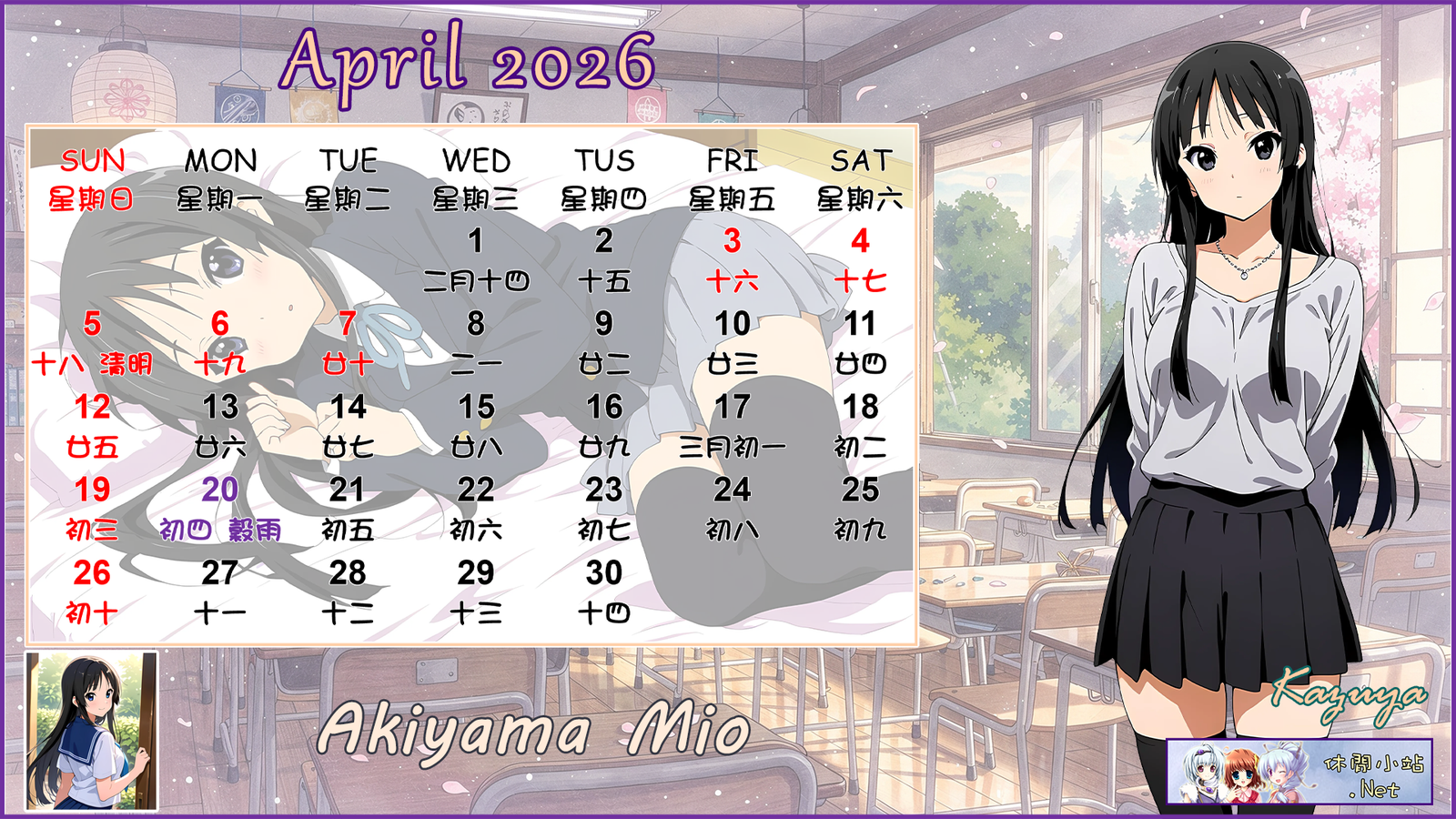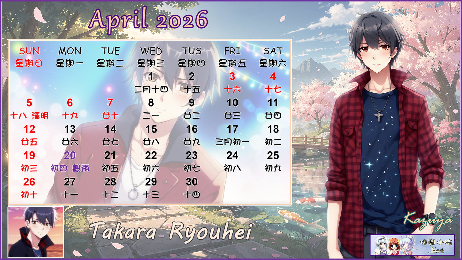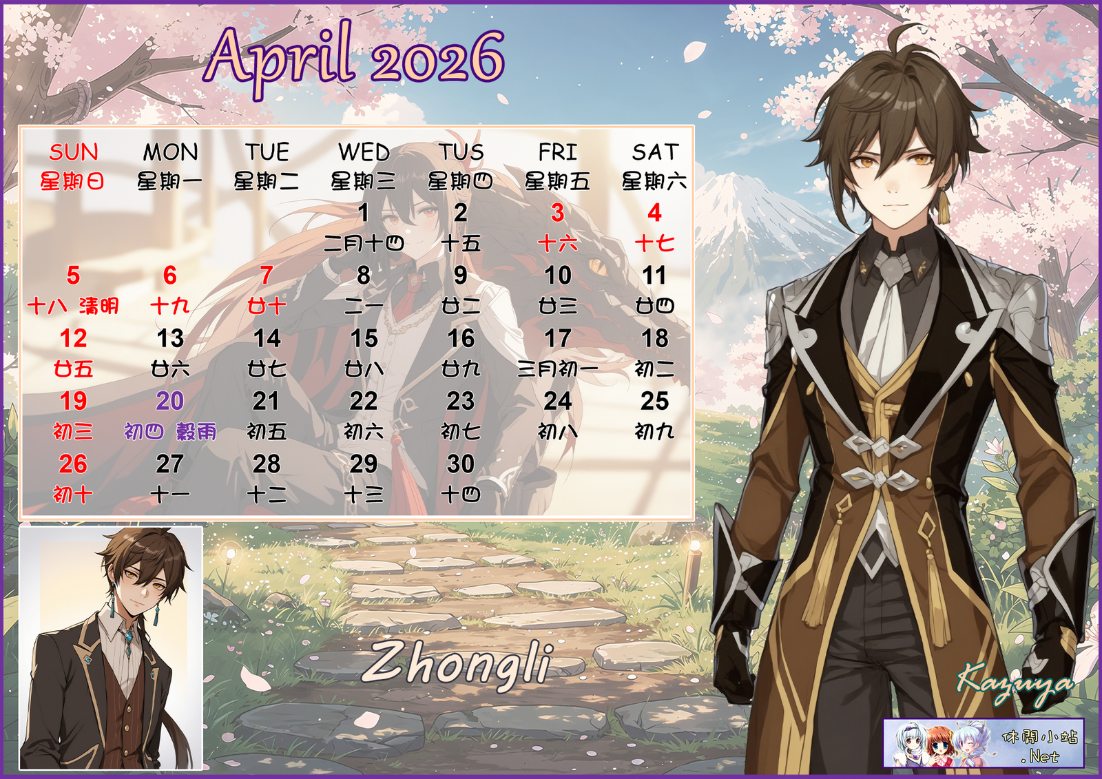 2026年4月月曆圖已公佈,中文,英文及各A4版都在下面,按下圖片可下載。