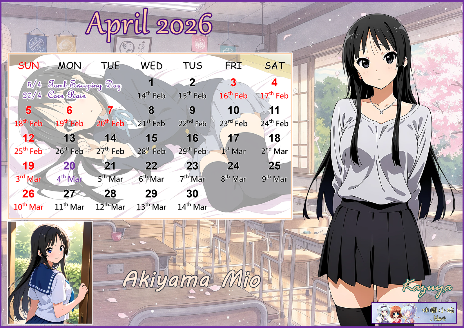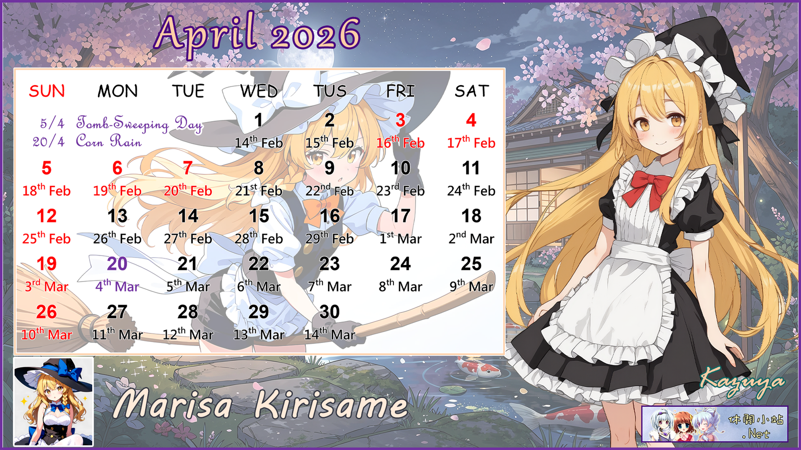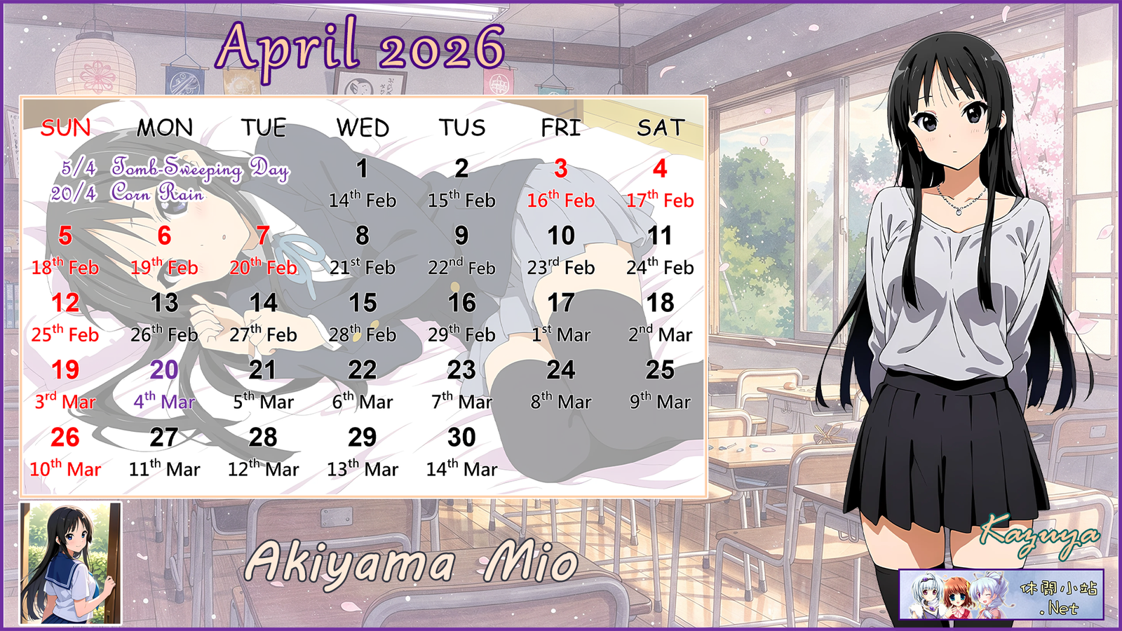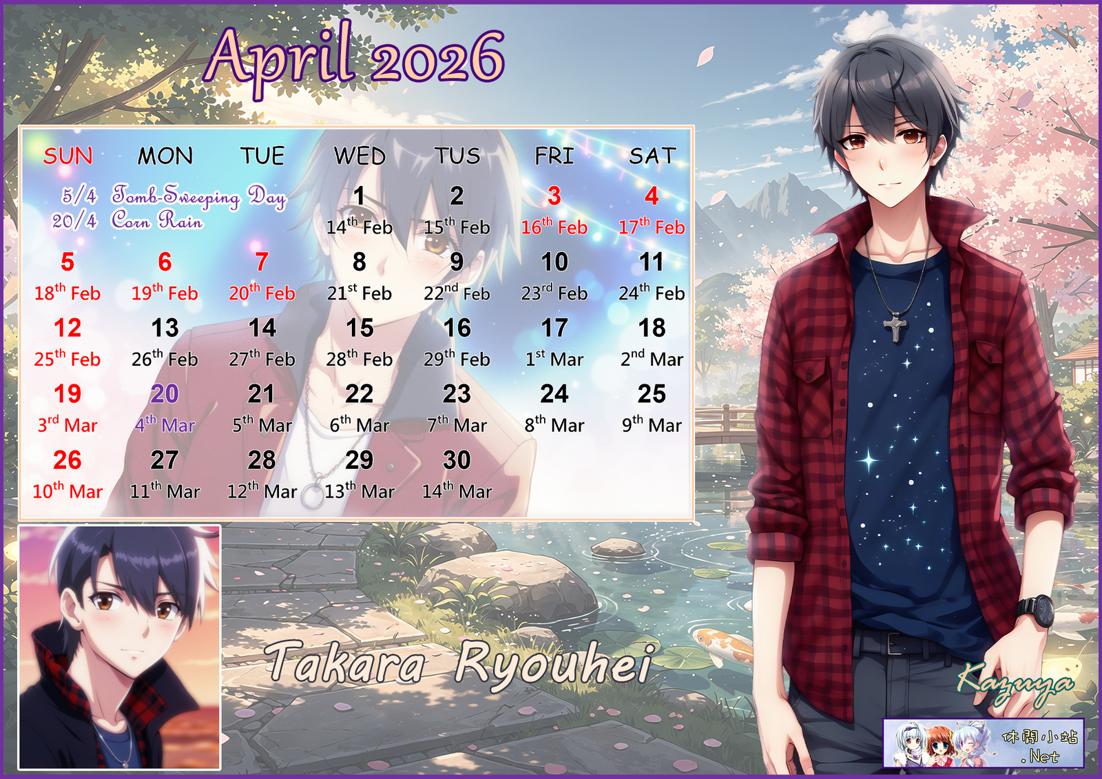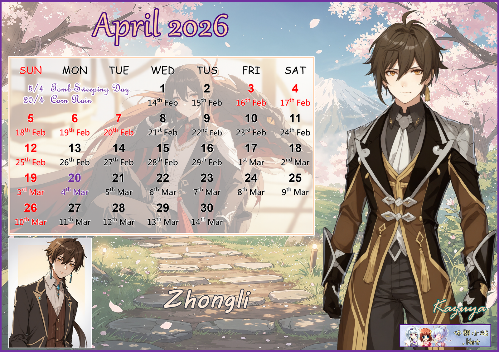 2026年4月月曆圖已公佈,中文,英文及各A4版都在下面,按下圖片可下載。
