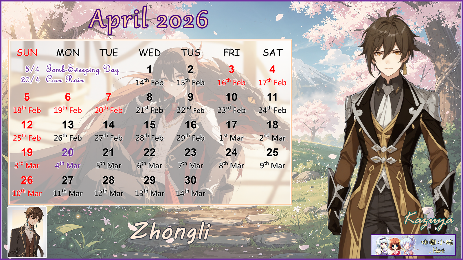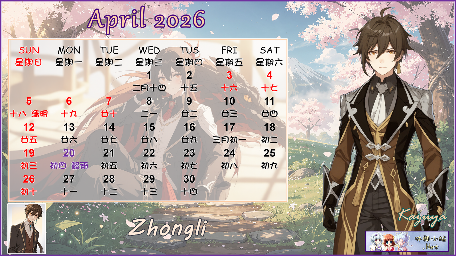 The April 2026 calendar wallpapers in Chinese, English, and A4 versions are available for download by clicking on the pictures below.